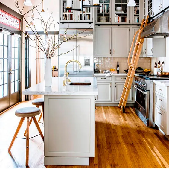 Optez pour une cuisine-bibliothèque ! Vous pourrez vous cultiver et cuisiner en même temps, quoi demander de plus ?!